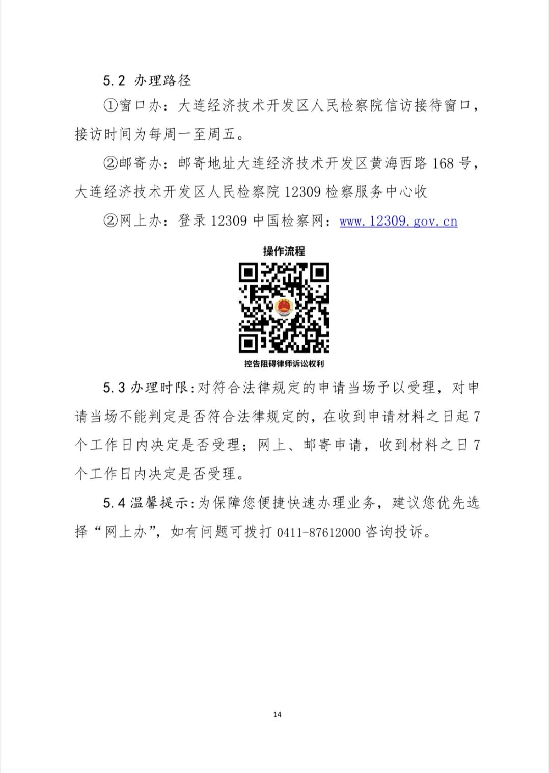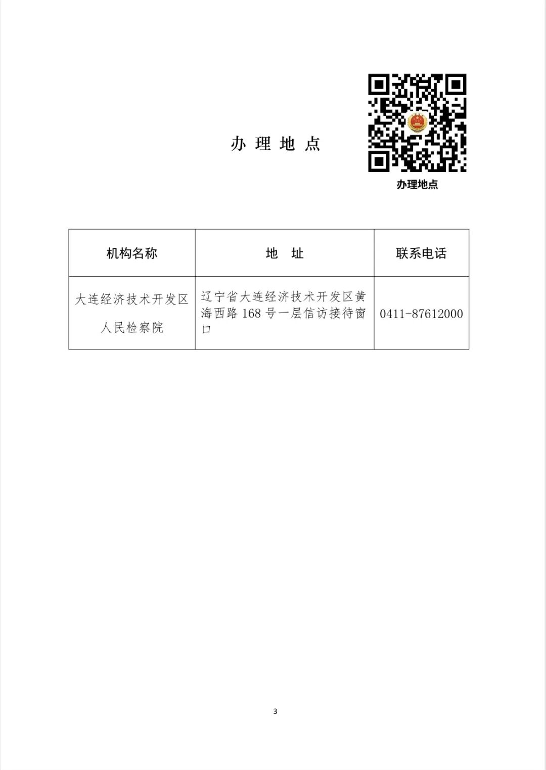 大连经济技术开发区人民检察院办事不找关系指南(信访)