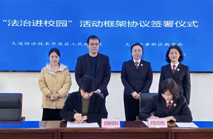 2024年1月25日上午,大连经济技术开发区人民检察院与金普新区教育局举行《开展“法治进校园”活动框架协议》签署仪式。