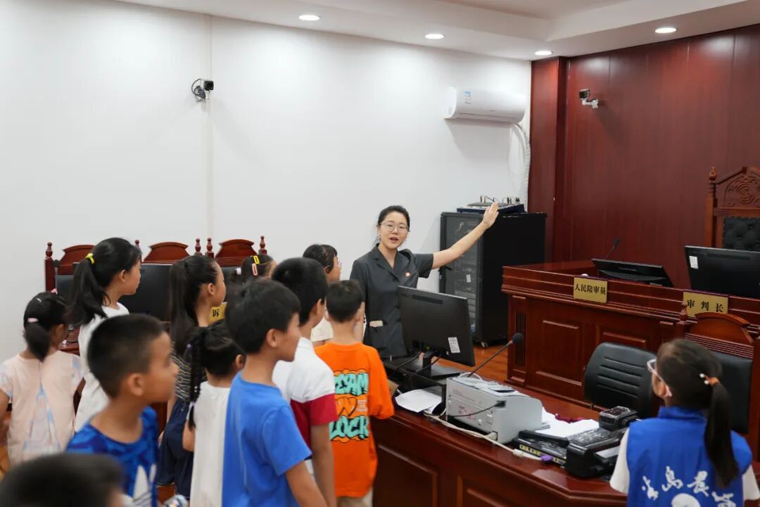 随后,小记者团一行来到了开发区法院,实地参观了庄严的法庭。在法官的带领下,孩子们体验了法官、检察官、律师等职业角色,了解法律程序与司法公正的重要性。法官和检察官还特别讲解了未成年人在法庭中的权利和保护措施,使小记者们更加感受了庭审的庄重与严谨。